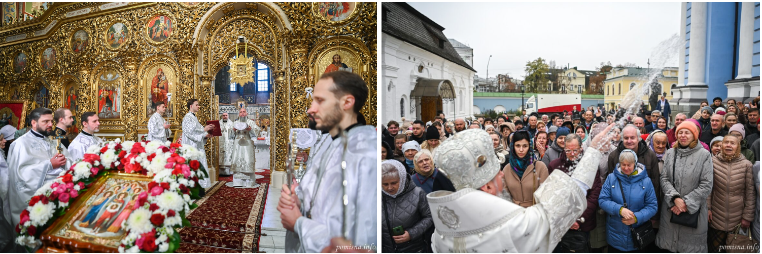 Предстоятелю автокефальної Української Православної Церкви співслужили ієрархи з усієї України: митрополити, архієпископи та єпископи, а також численне духовенство і братія монастиря. Разом вони підносили молитви за мир у нашій державі, за перемогу над злом і за всіх воїнів, які сьогодні боронять Україну.