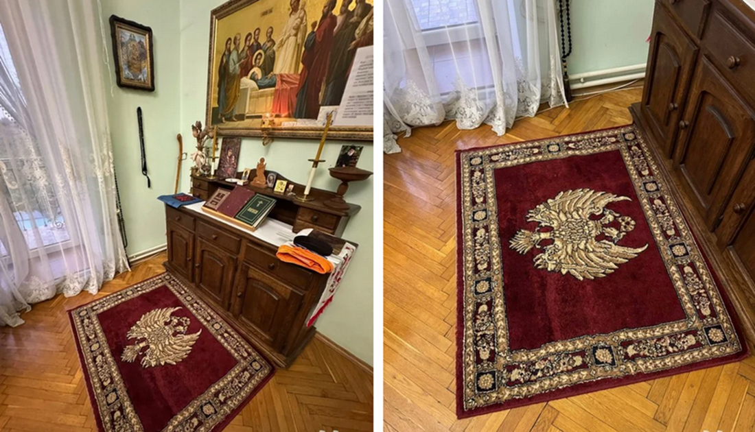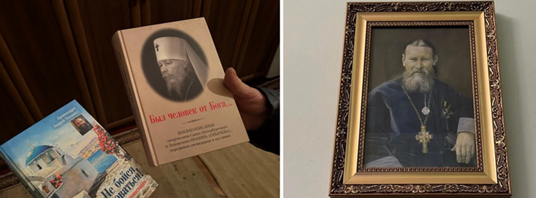Під час інвентаризації журналісти зафіксували кілька суперечливих знахідок у храмі. Зокрема, ікону Івана Кронштадтського — російського святого, який був членом ультранаціоналістичної організації «Союз русского народа», що пропагувала імперські й ксенофобські ідеї. Також було помічено килимок із двоголовою істотою, схожою на орла — символ, який зображено на гербі країни-агресора.