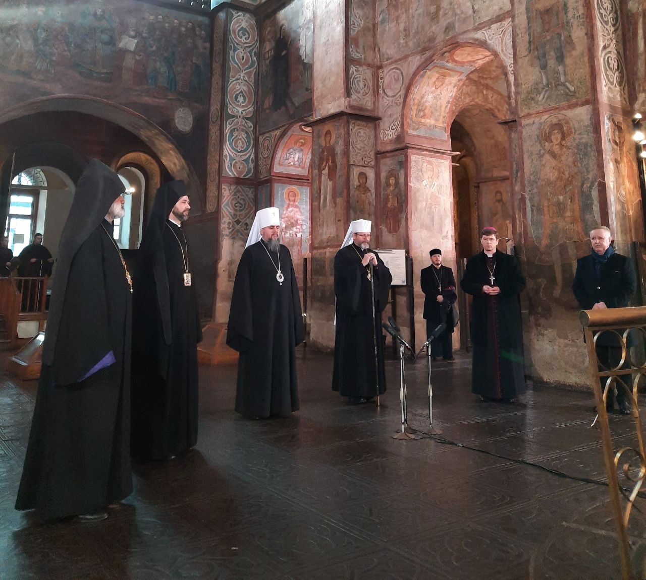 За його словами, до молитви долучилися предстоятель Православної церкви України митрополит Епіфаній. Блаженнійший Митрополит Київський і всієї України Епіфаній в тисячолітній святині Православної Церкви – Соборі святої Софії виголосив молитву про визволення України від агресора: