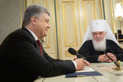 Президент Петро Порошенко провів зустріч з Предстоятелями православних церков України та офіційно прийняв Звернення для передачі Вселенському Патріарху Варфоломію про надання українській церкві Томосу про автокефалію з підписами усіх архієреїв, які підтримали це рішення.