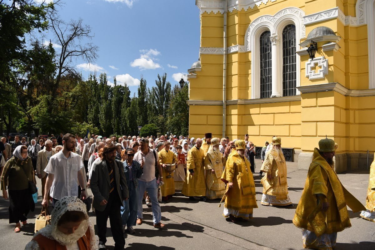Після завершення Божественної літургії, під дзвони Володимирського собору, відбувся хресний хід навколо храму з читанням Євангелія.