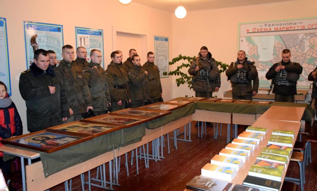 Після цього усі воїни та їхні рідні, які прийшли зустріти свої героїв, разом пройшли до навчального приміщення, де отець Анатолій освятив ікони і книги, які придбав у частину для молитви і духовної підтримки в нелегкій військовій службі. Також присутні помолилися до Тернопільської ікони Божої Матері за усіх воїнів-захисників України.