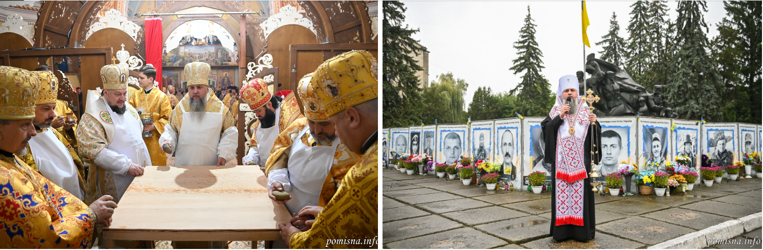 Наприкінці богослужіння Предстоятель вручив настоятелю храму іменний хрест та відзначив благодійників церковними нагородами. Завершення урочистості стало глибоко зворушливим: Митрополит Епіфаній разом із духовенством звершив літію на місцевій Алеї Слави за полеглими воїнами. Під спів молитви лунали слова вдячності за їхній жертовний подвиг та прохання до Бога про упокій їхніх душ.