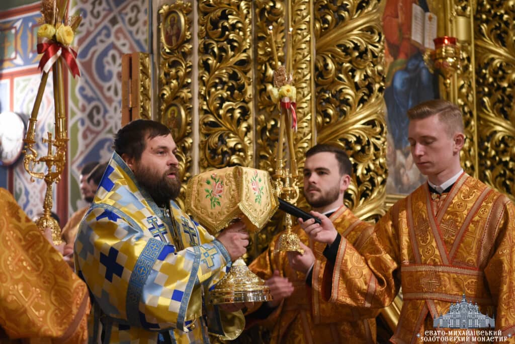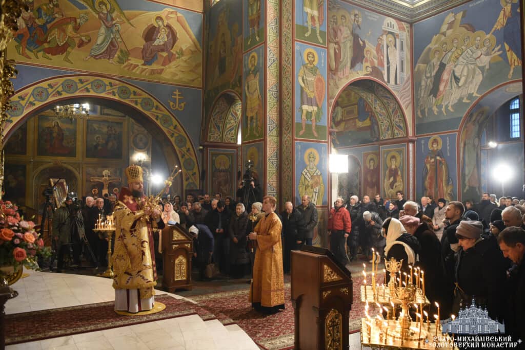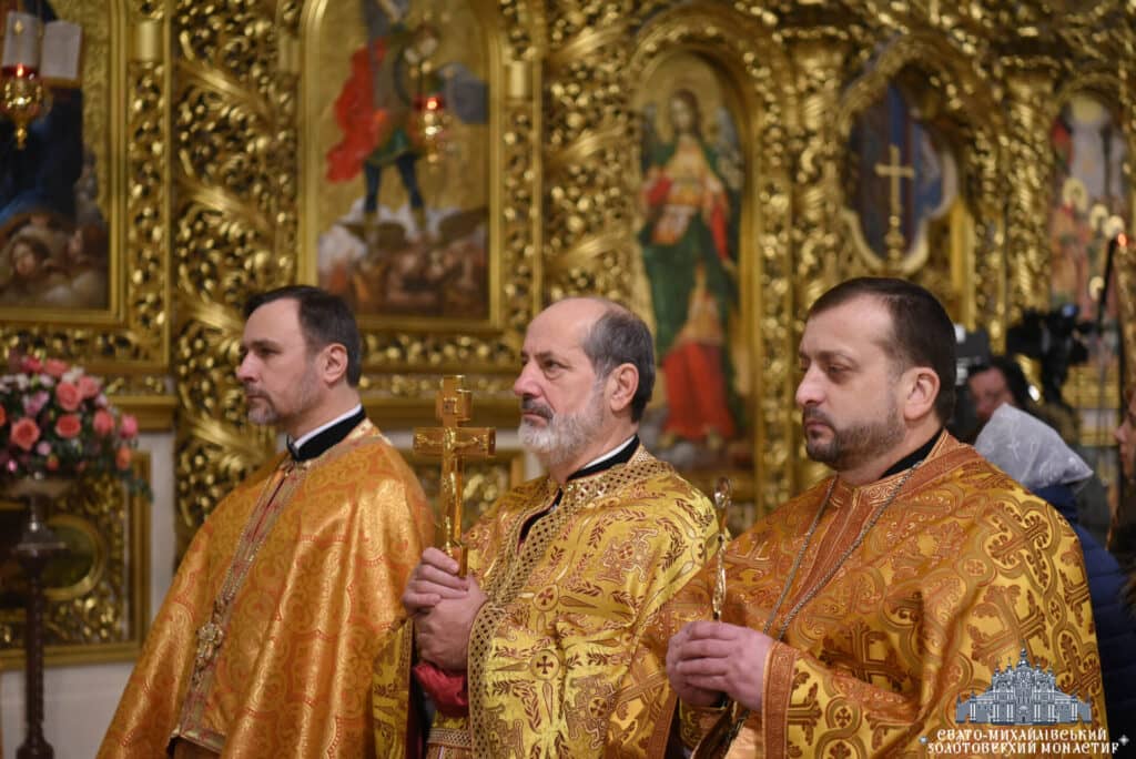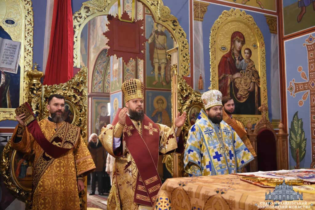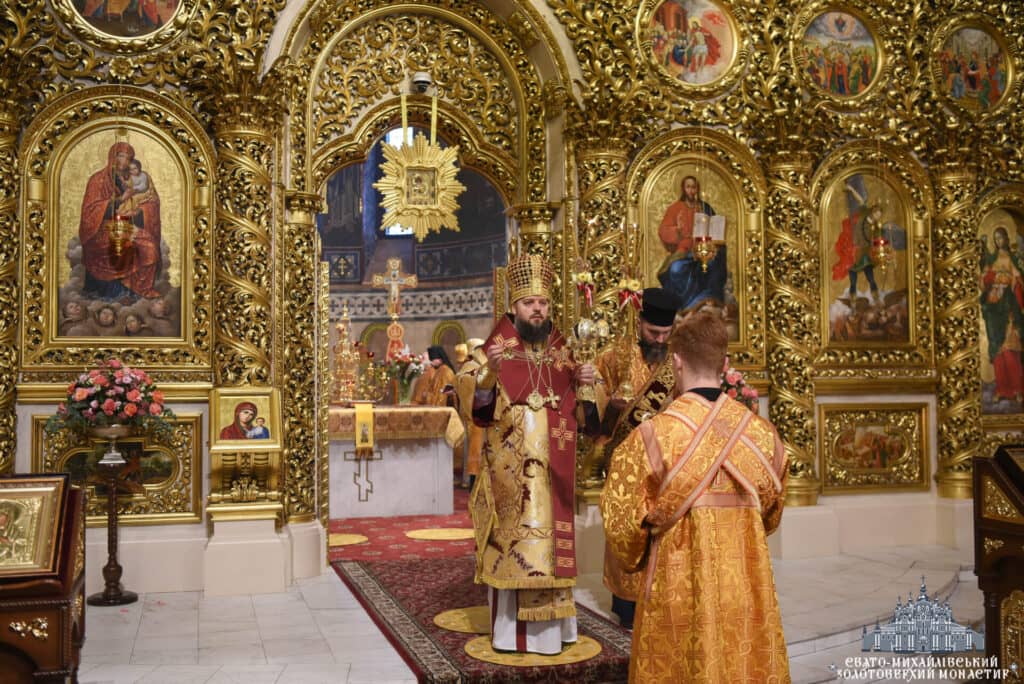 Архієпископ Вишгородський Агапіт, намісник Свято-Михайлівського Золотоверхого монастиря, очолив урочисту Божественну Літургію в Михайлівському соборі. Владиці співслужив єпископ Борис Харко та братія монастиря. Під час богослужіння звучали молитовні прохання за воїнів та благословення для України.